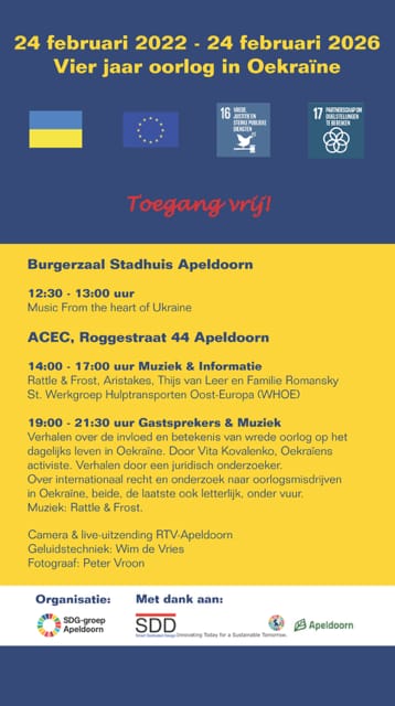 Op dinsdag 24 februari wordt tijdens 3 bijeenkomsten stil gestaan bij de gevolgen van de oorlog:
