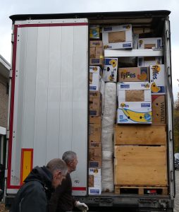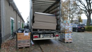 Op dinsdag 11 november is er een vrachtwagen geladen met spullen voor Oekraïne. Een bomvolle oplegger met matrassen, kleding, stoelen, kasten, tafels, speelgoed, kinderbedden, schoolmeubels, beddengoed en éénpersoons bedden vertrok vanaf onze opslag op het Zwitsalterrein aan de Vlijtseweg.