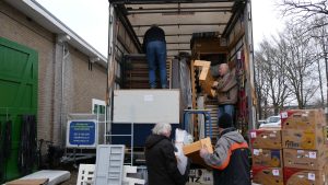 Ondanks het koude weer is op vrijdag 30 januari 2026 een trailer vol met spullen geladen voor Oekraïne. Naast grote spullen zoals schoolmeubels, matrassen, dozen en zakken vol met kleding, kinderfietsen, speelgoed, (kinder)bedden en tafels, zijn er ook kleine, maar niet minder belangrijke zaken mee gestuurd, zoals brillen en verbandmiddelen.